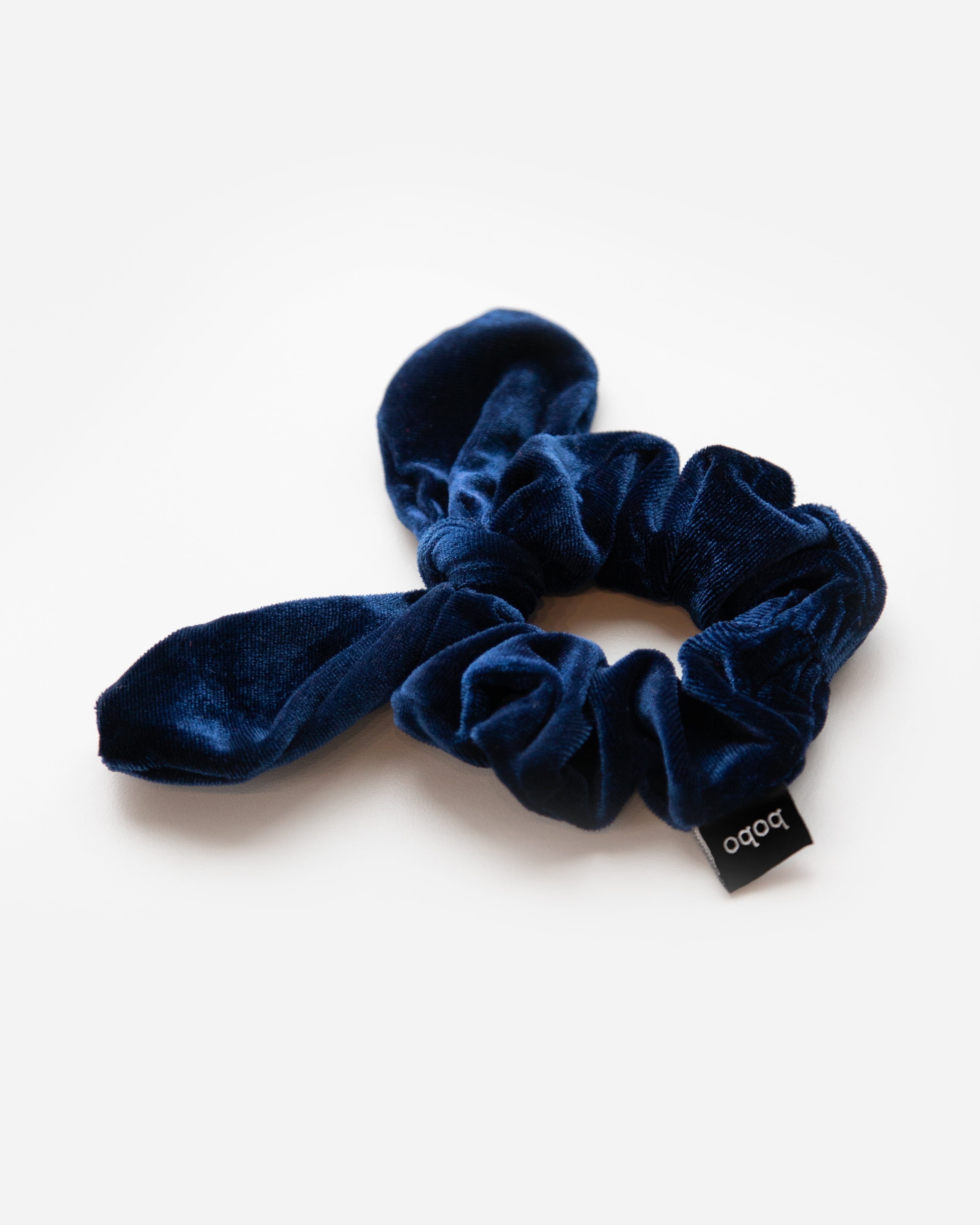 Elasticized scrunchie in premium silk velvet. Extra-gentle on hair, as luxuriously soft material minimizes friction and damage to hair. Flat elastic for no pull, with a signature removable bow.