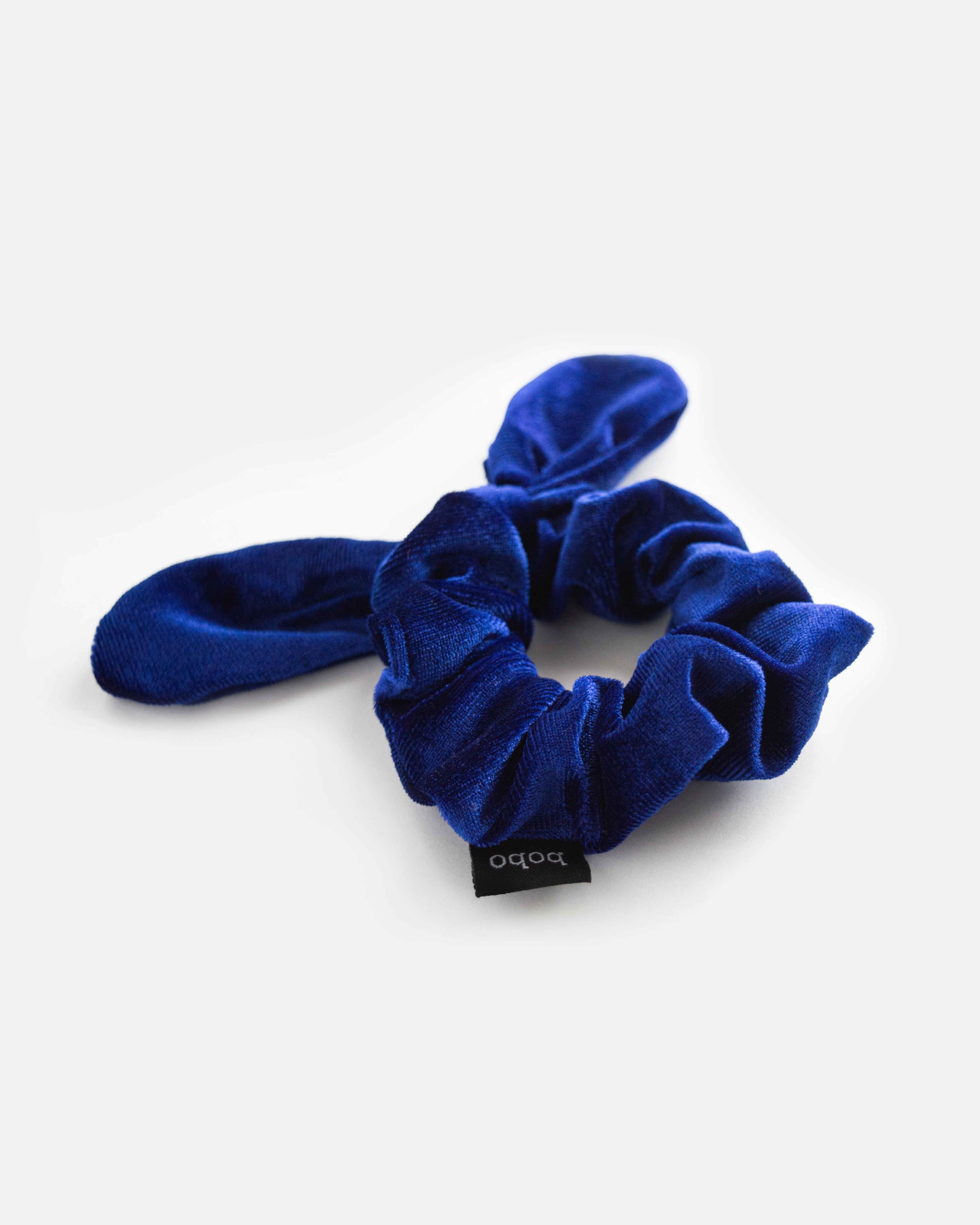 Elasticized scrunchie in premium silk velvet. Extra-gentle on hair, as luxuriously soft material minimizes friction and damage to hair. Flat elastic for no pull, with a signature removable bow.