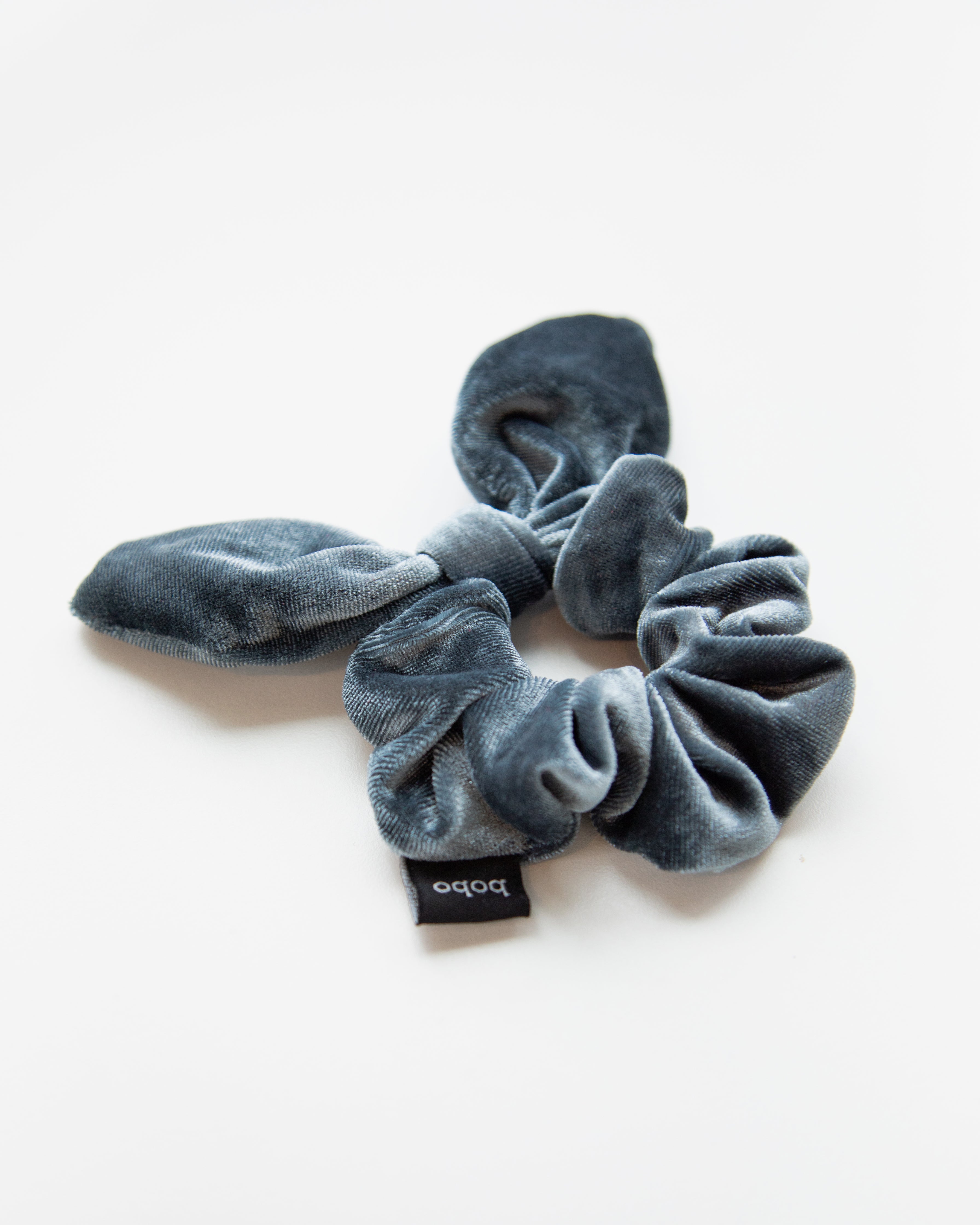 Elasticized scrunchie in premium silk velvet. Extra-gentle on hair, as luxuriously soft material minimizes friction and damage to hair. Flat elastic for no pull, with a signature removable bow.