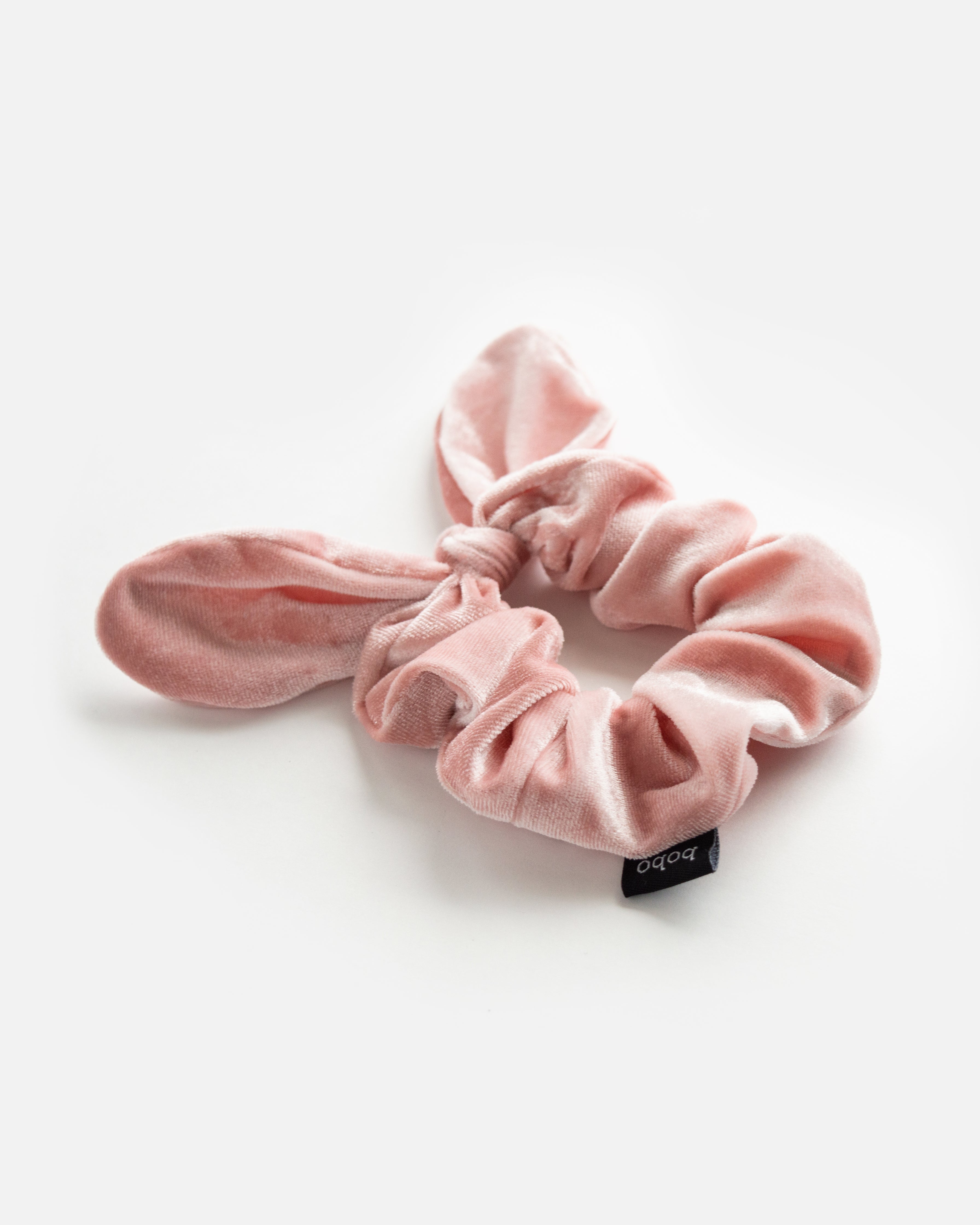 Elasticized scrunchie in premium silk velvet. Extra-gentle on hair, as luxuriously soft material minimizes friction and damage to hair. Flat elastic for no pull, with a signature removable bow.